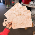 - laser cut and engraved maple wood