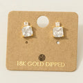 Gold Dipped Square Rhinestones Stud Earrings