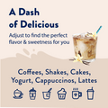 You asked - we got to work! Our NEW, Naturally Sweetened Vanilla Bean syrup provides all the smooth and buttery flavor of classic vanilla, but NONE of the calories or sugar. Naturally sweetened with stevia, monk fruit, and erythritol. More natural, more flavor, 0 calories, 0 sugar. 🚫 0 calories. 0g sugar. 6g carbs. πŸ”’ 375 ml/12.7 fl. oz. Bottle - 13 Servings! βœ… Gluten-Free & Kosher. 🌱 No artificial sweeteners or flavors πŸ₯› Dairy-free. πŸ‡ΊπŸ‡Έ Made in the USA. 🧊 Refrigeration not required. Flavor Notes: Rich, smooth, creamy flavor with sweet, buttery vanilla aroma. Add guilt-free flavor to coffees, lattes, tea, protein shakes, smoothies, baking, oatmeal, yogurt, overnight oats, or just about anything.