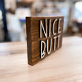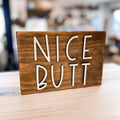 Let your bathroom visitors know they're in the right place with this "Nice Butt" Shelf Sign! Its perfect for adding a hint of humor to any restroom and sure to put a smile on anyones face. Not to mention, that wooden sign will look great perched atop a shelf or hanging on your wall!