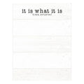 Take a (mostly) stoic stance on things with the It Is What It Is (A Real Shituation) Notepad. This 5.75" high by 4.25" wide notepad features a subtle shiplap style background and reads 'it is what it is (a real shituation)' in black text. The notepad has 50 sheets of paper and includes a magnetic strip with adhesive backing that can be attached to the back.