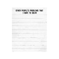 Other People's Problems Notepad helps plan for any crisis! It has 50 sheets of paper and includes a magnet on the back for easy hanging on magnetic surfaces. Design features a weathered background with the phrase, "other people's problems that I have to solve," at the top. Measures 5.75" high by 4.25" wide. Made in the USA.
