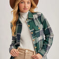 Green Flannel Plaid Shacket with Pockets